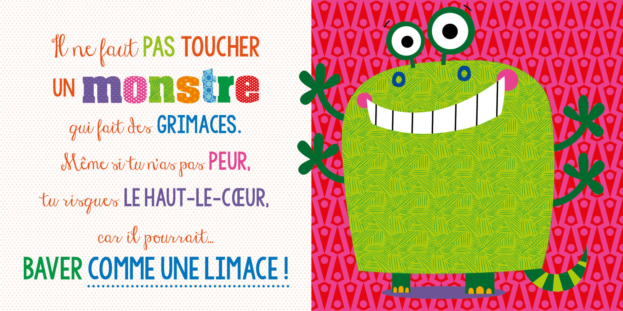 Un livre d’éveil avec des surfaces à toucher en silicone. Des textes rigolos, pour s’amuser avec des rimes. Éclats de rire garantis sur chaque page !