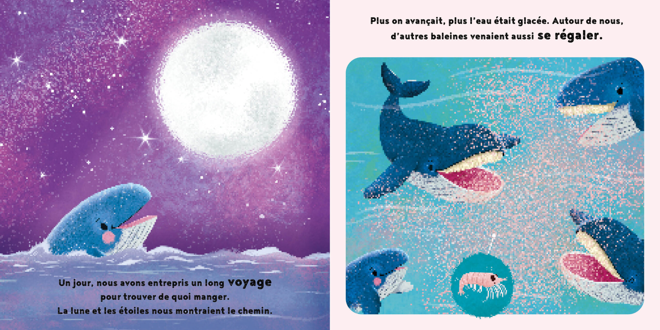 Un album illustré et une belle histoire pour expliquer aux enfants le cycle de vie de la baleine bleue. Je suis née dans l’océan, immense et silencieux. Autour de moi, tout était bleu. Serrée contre ma maman, je nageais doucement. Elle m’aidait à remonter pour respirer… Une petite baleine raconte sa naissance dans l’océan immense, ses premiers mois, collée à sa maman, sa découverte du krill et les grandes migrations, jusqu’au moment où elle donne à son tour naissance à une petite baleine. La collection Cycles Naturels explique aux jeunes enfants les cycles de vie des animaux, des plantes et de la nature. Les histoires tendres, les textes simples et les illustrations colorées facilitent la compréhension des mécanismes naturels, avec une page d’explications pédagogiques à la fin de chaque livre.