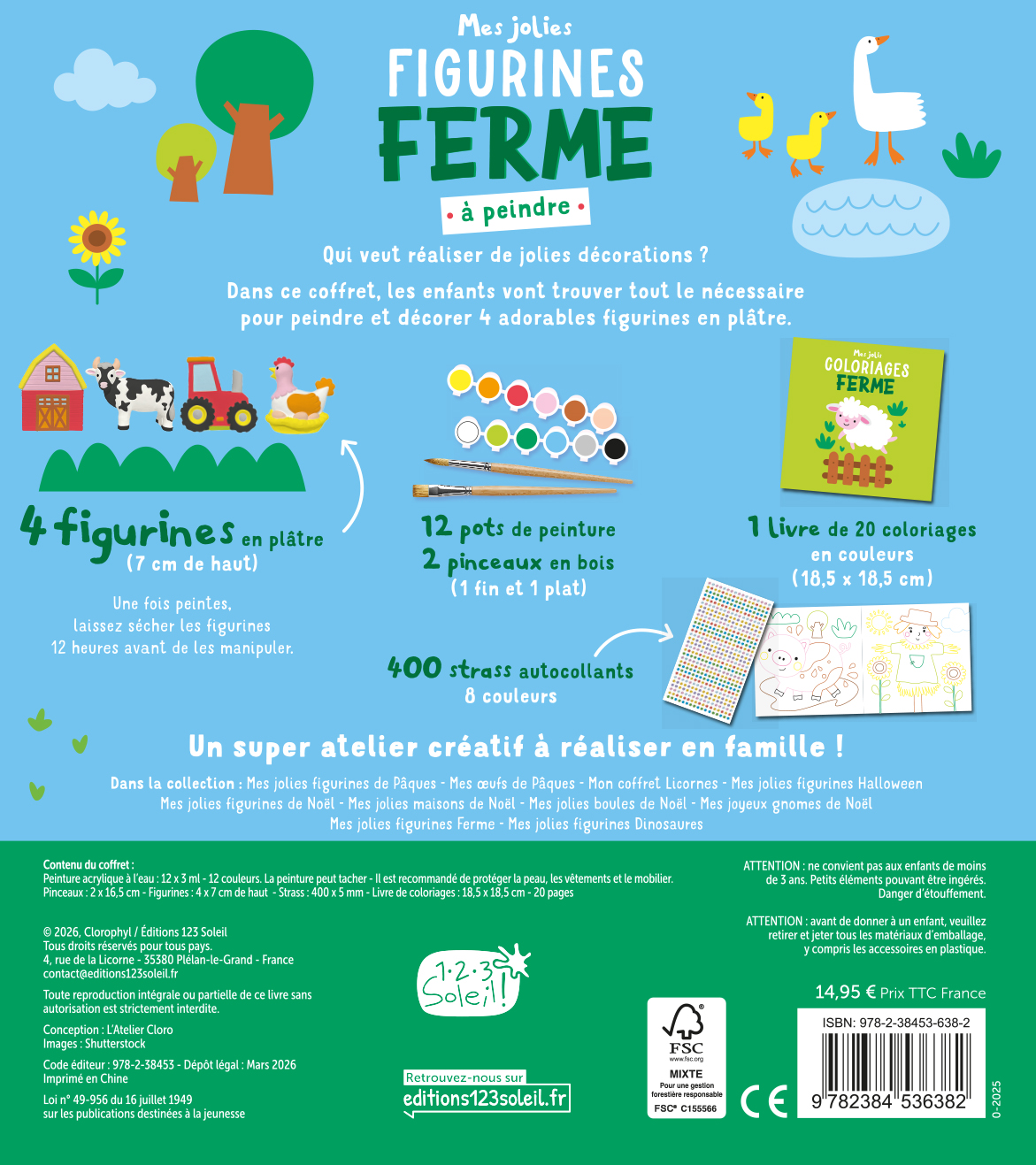 Activités, Coffret, Coloriages, Décoration, Ferme, Figurines Plâtre, Habitat, Livre, Peinture, Strass Autocollants