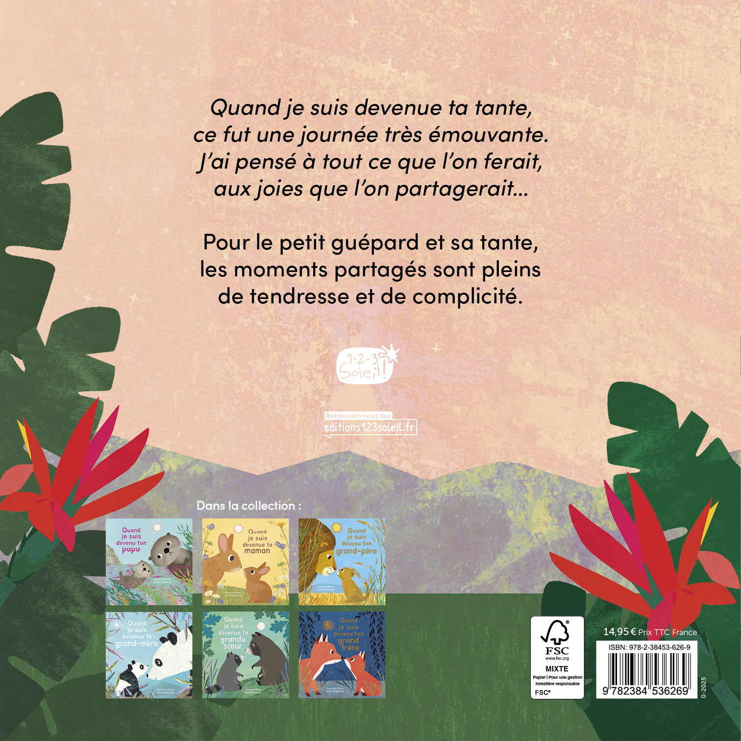 Un bel album plein de douceur sur le lien unique entre une tante et son neveu, avec de la dorure sur toutes les pages. Cet album est une magnifique lettre d’amour d’une tante guéparde à son neveu. Se promener dans la nature et s’émerveiller, jouer ensemble, confier ses petits tracas, penser à l’avenir, découvrir le monde… Les moments partagés, pleins de tendresse et de complicité, resteront à jamais gravés dans leur cœur. Les illustrations scintillent sous les effets de dorure sur la couverture et sur toutes les pages, faisant de cet album une belle idée cadeau. « Quand je suis devenu » est une collection sur la douceur des liens familiaux, la complicité et la tendresse qui unissent petits et grands.